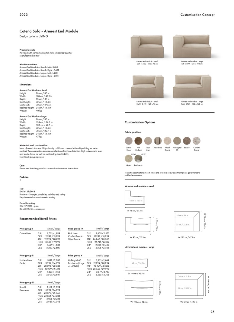 Armrest End Module - Small - Right - S401