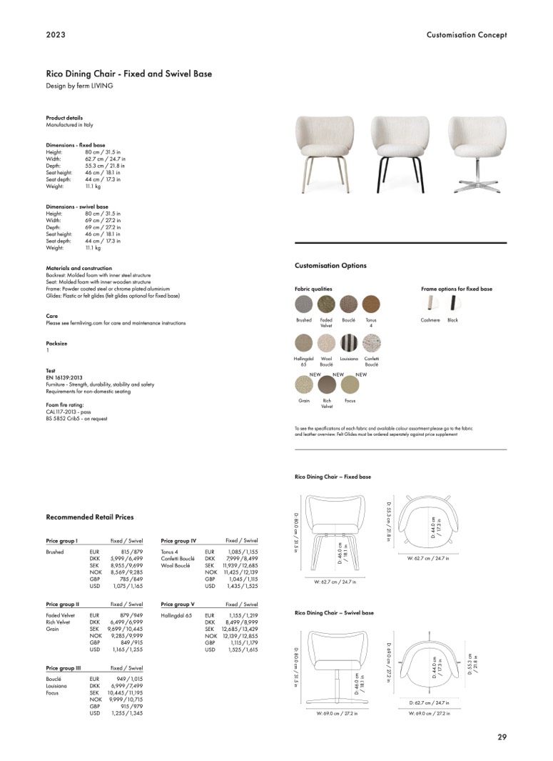To see the specifications of each fabric and available colour assortment please go to the fabric