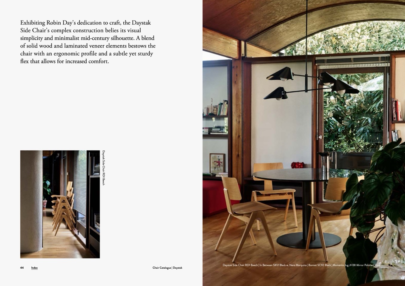 Daystak Side Chair RD1 Beech | In Between SK12 Black w. Nero Marquina | Bonnet SC92 Black | Momento Jug JH38 Mirror Polished Steel