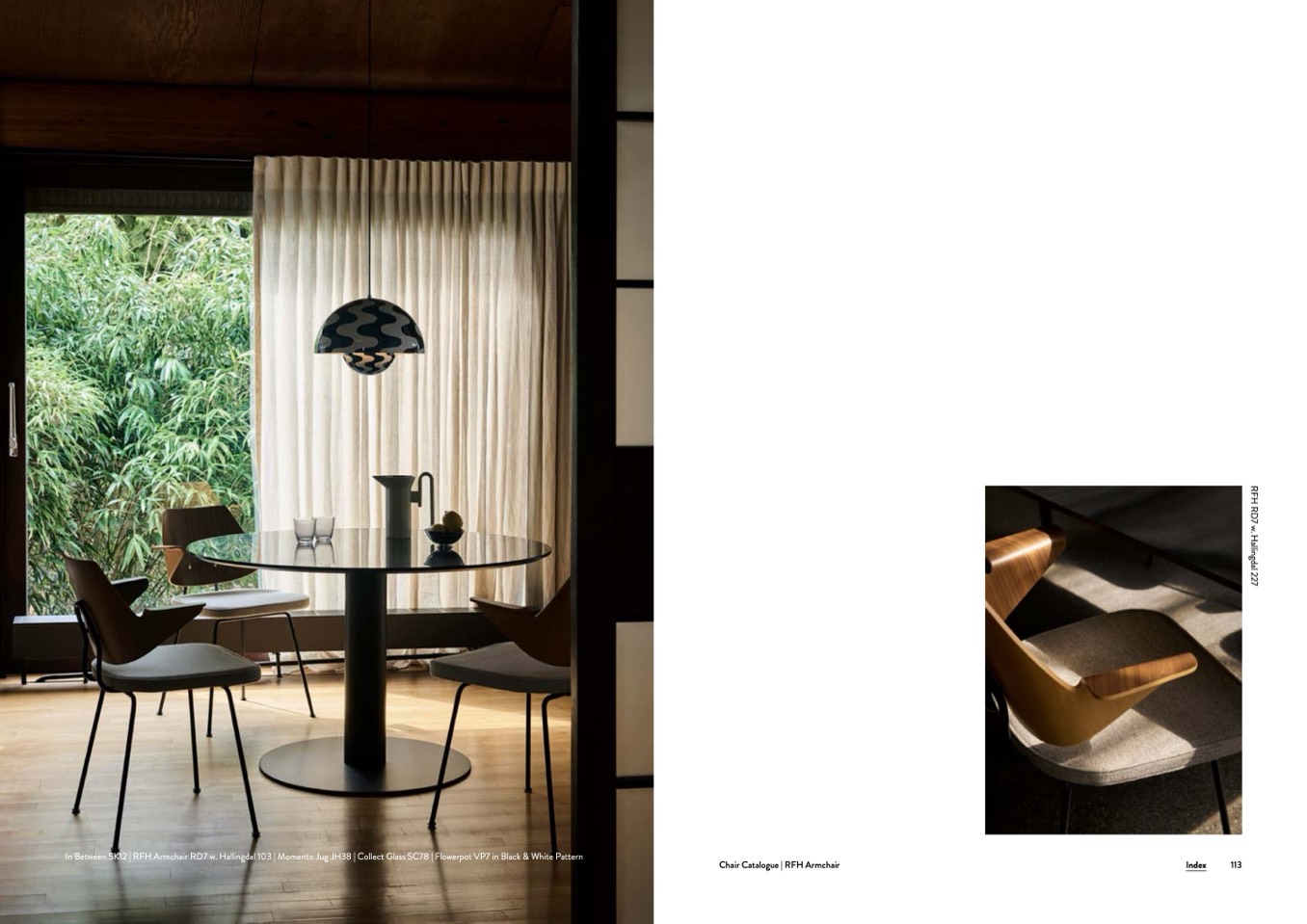 In Between SK12 | RFH Armchair RD7 w. Hallingdal 103 | Momento Jug JH38 | Collect Glass SC78 | Flowerpot VP7 in Black & White Pattern