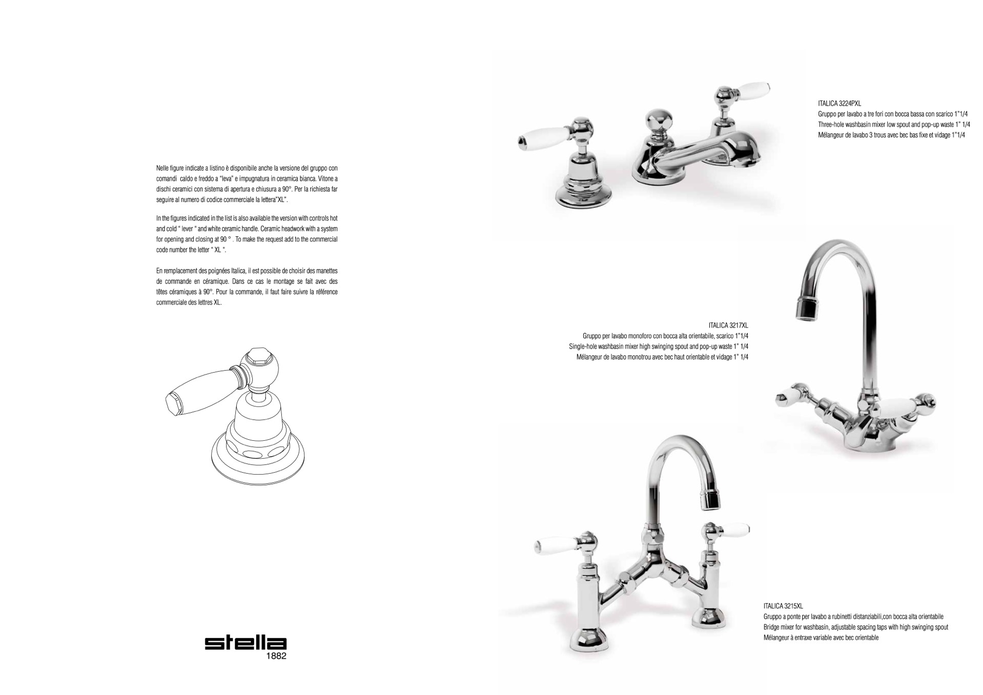 comandi caldo e freddo a “leva” e impugnatura in ceramica bianca. Vitone a