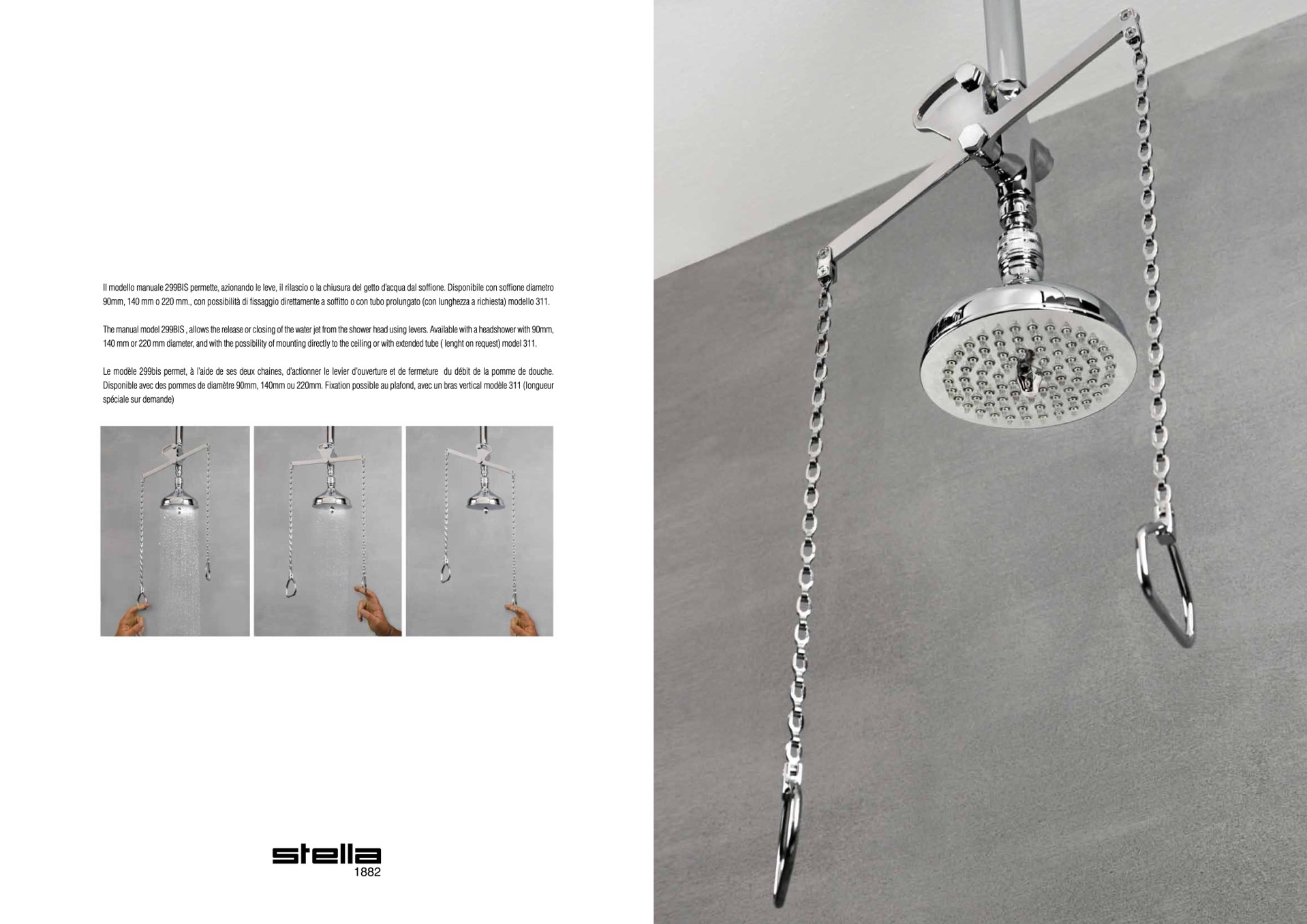 Il modello manuale 299BIS permette, azionando le leve, il rilascio o la chiusura del getto d’acqua dal soffione. Disponibile con soffione diametro