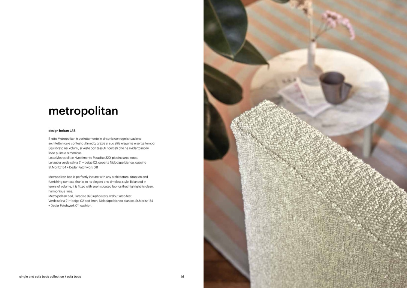 Verde salvia 21 + beige 02 bed linen, Nidodape bianco blanket, St.Moritz 154