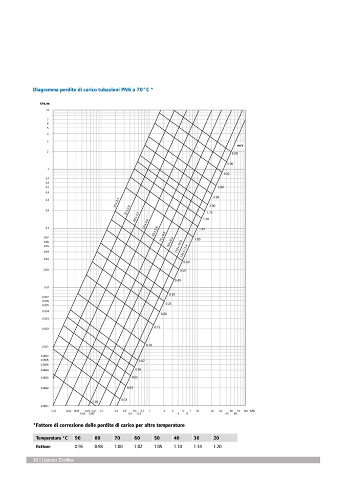 Diagramma perdite di carico tubazioni PN6 a 70°C *