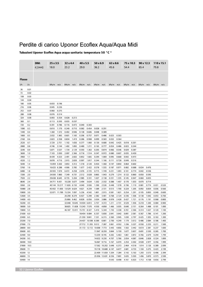 Tubazioni Uponor Ecoflex Aqua acqua sanitaria: temperatura 50 °C *