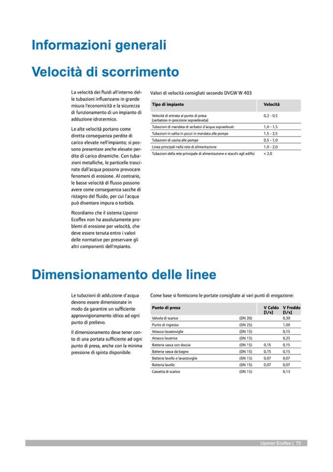 Come base si forniscono le portate consigliate ai vari punti di erogazione:
