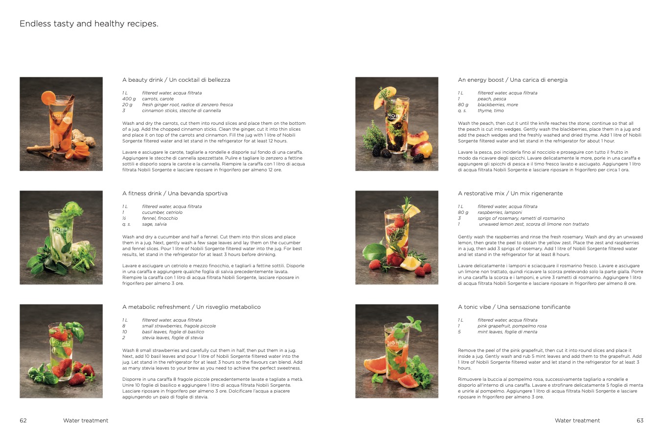 and fennel slices. Pour 1 litre of Nobili Sorgente filtered water into the jug. For bes