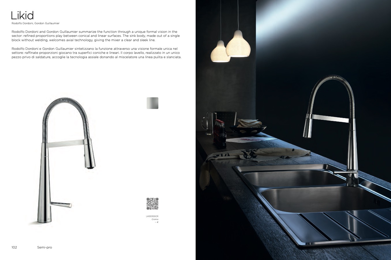 settore: raffinate proporzioni giocano tra superfici coniche e lineari. Il corpo lavello, realizzato in un unic