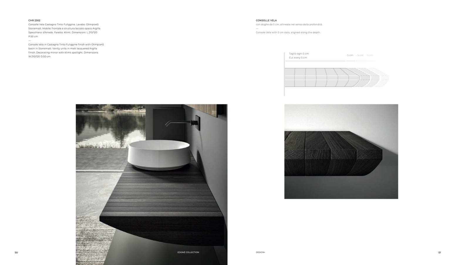 Consolle Vela Castagno Tinto Fuliggine. Lavabo: Olimpia45