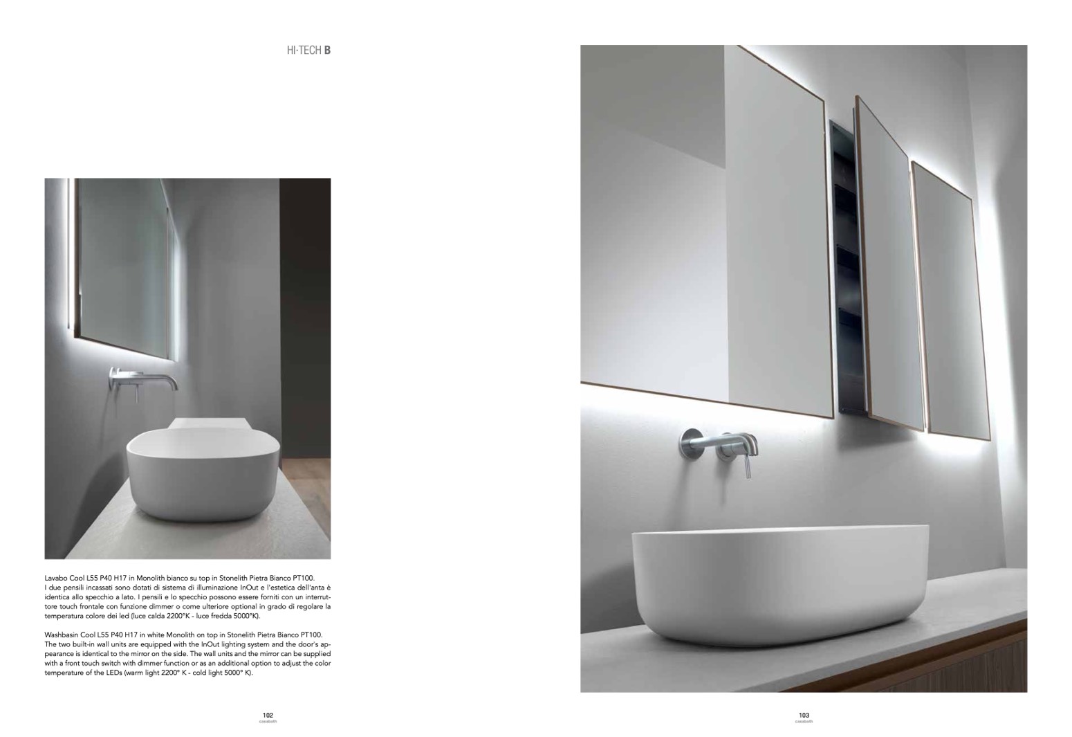 Lavabo Cool L55 P40 H17 in Monolith bianco su top in Stonelith Pietra Bianco PT100.