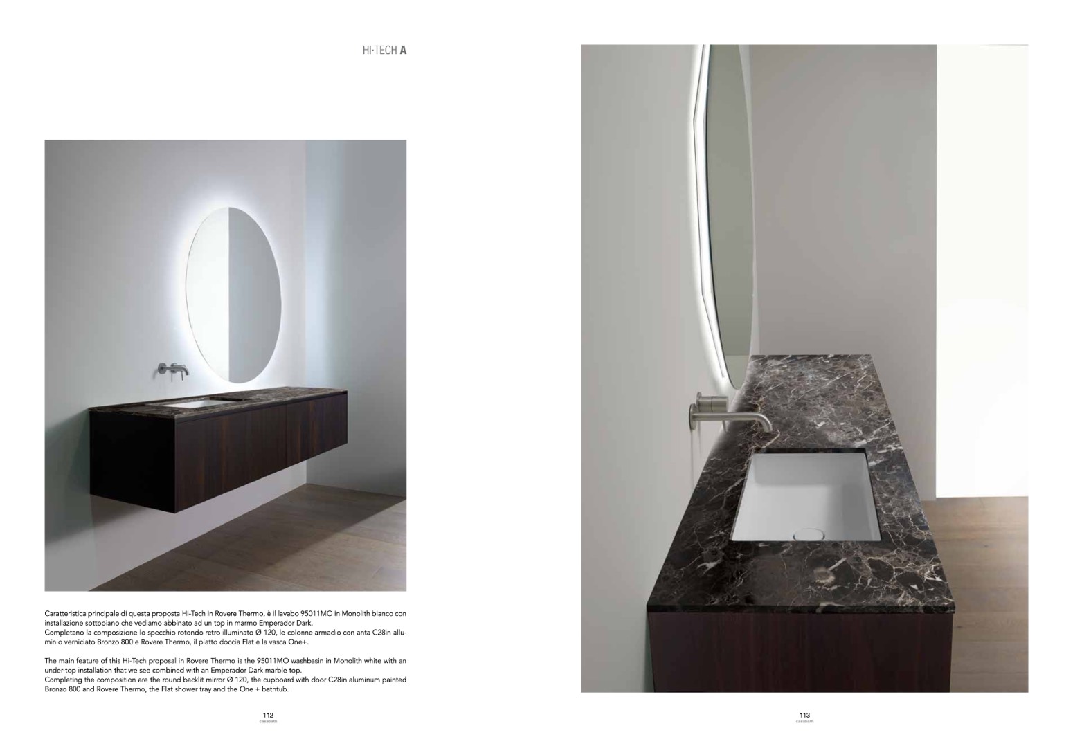 The main feature of this Hi-Tech proposal in Rovere Thermo is the 95011MO washbasin in Monolith white with an