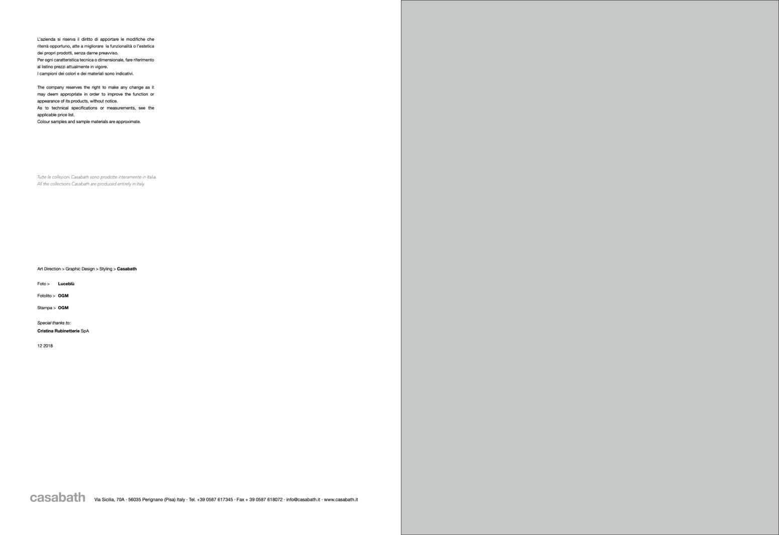 Via Sicilia, 70A · 56035 Perignano (Pisa) Italy · Tel. +39 0587 617345 · Fax + 39 0587 618072 · info@casabath.it · www.casabath.it