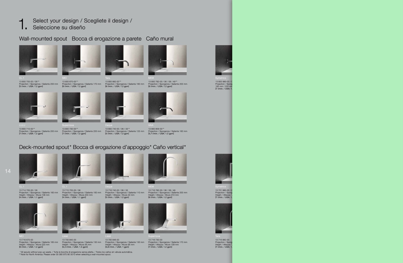 ** Note for North America: Please order 35 080 970 90 0010 when selecting a wall-mounted spout.