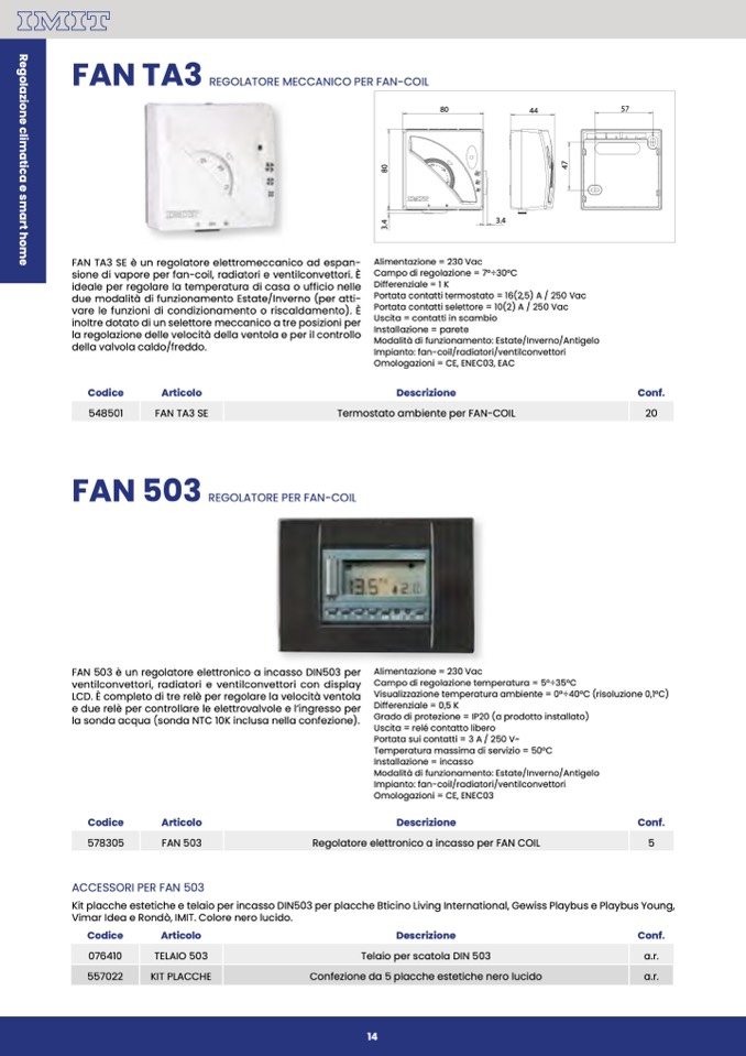 FAN 503 è un regolatore elettronico a incasso DIN503 per