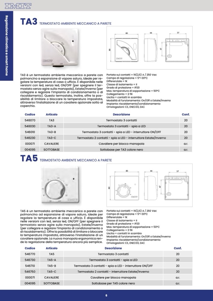 TA5 è un termostato ambiente meccanico a parete con