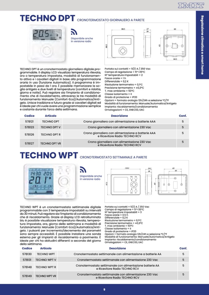 TECHNO WPT è un cronotermostato settimanale digitale