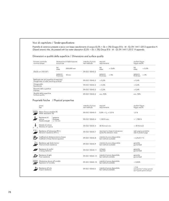 Piastrelle di ceramica pressate a secco con basso assorbimento di acqua (0,5% < Eb ≤ 3%) Gruppo B1b - M - GL EN 14411:2012 appendice H.