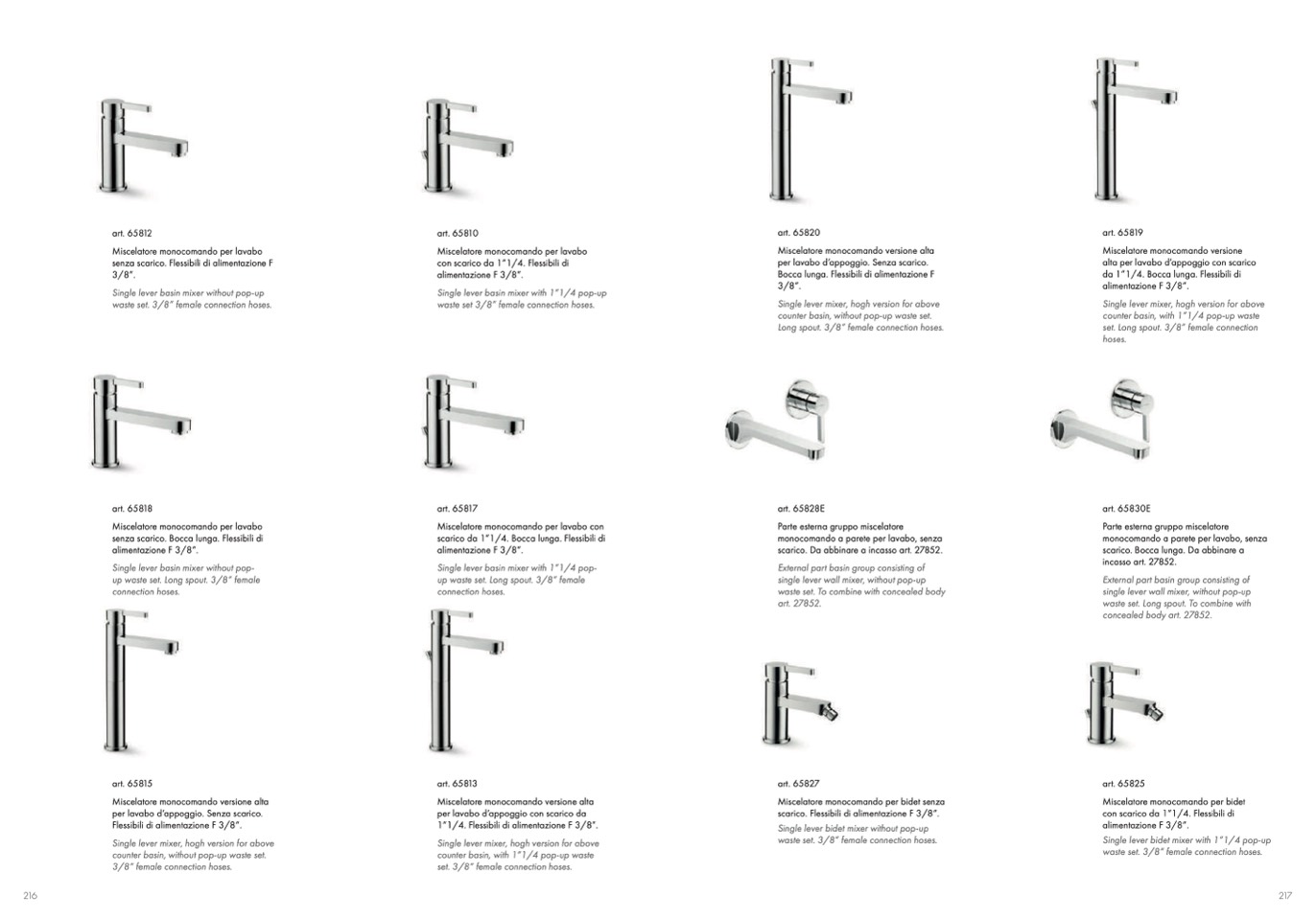 scarico. Flessibili di alimentazione F 3/8”.