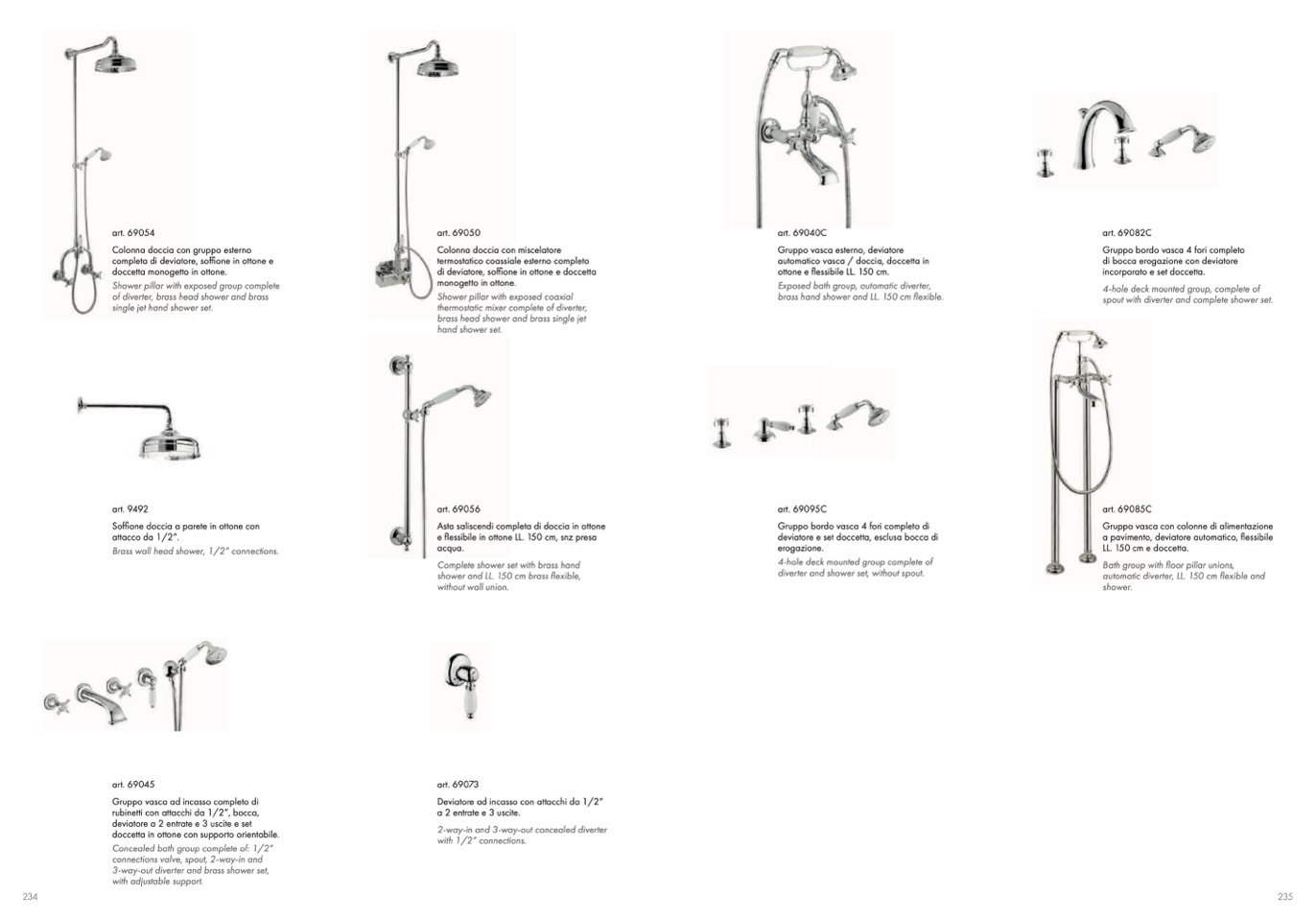 di deviatore, soffione in ottone e doccetta