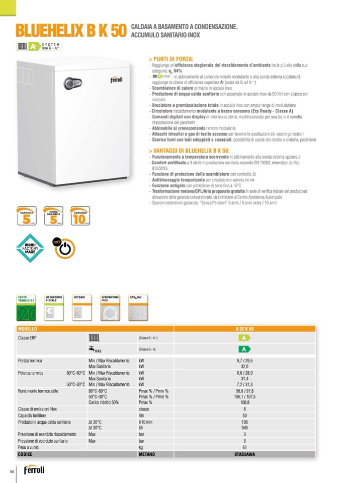 - Attacchi idraulici e gas di facile accesso per favorire le sostituzioni dei vecchi generatori
