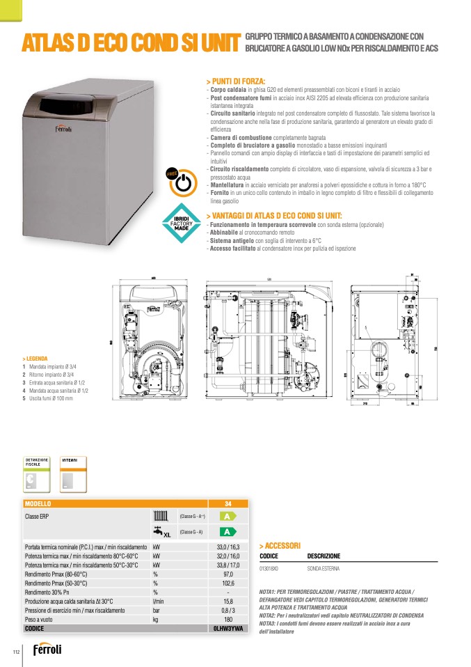 - Post condensatore fumi in acciaio inox AISI 2205 ad elevata efficienza con produzione sanitaria