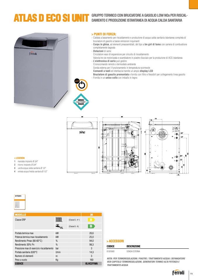 - Caldaia a basamento per riscaldamento e produzione di acqua calda sanitaria istantanea completa di