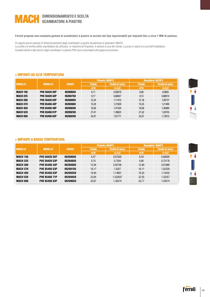 Caratteristiche e dati tecnici degli scambiatori a piastre PHE sono consultabili alle pagine successive.