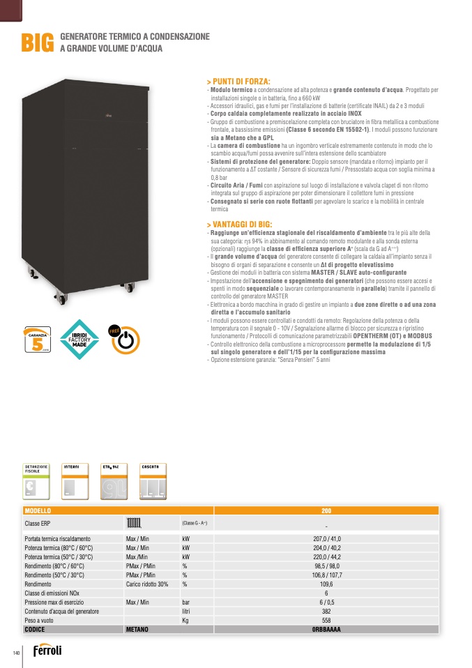 - Modulo termico a condensazione ad alta potenza e grande contenuto d’acqua. Progettato per