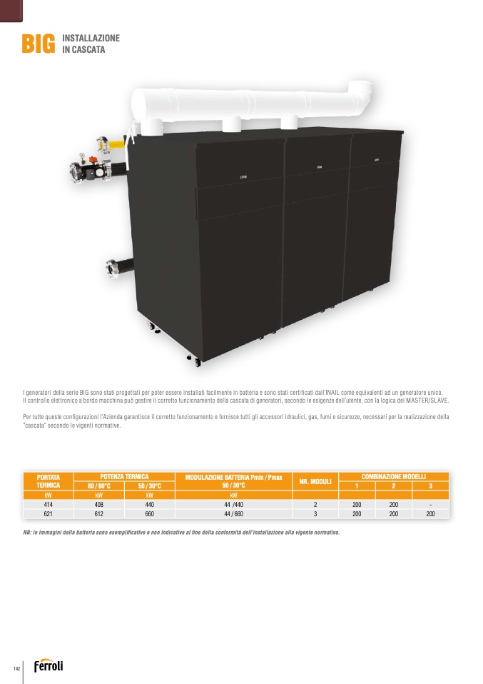 I generatori della serie BIG sono stati progettati per poter essere installati facilmente in batteria e sono stati certificati dall’INAIL come equivalenti ad un generatore unico.