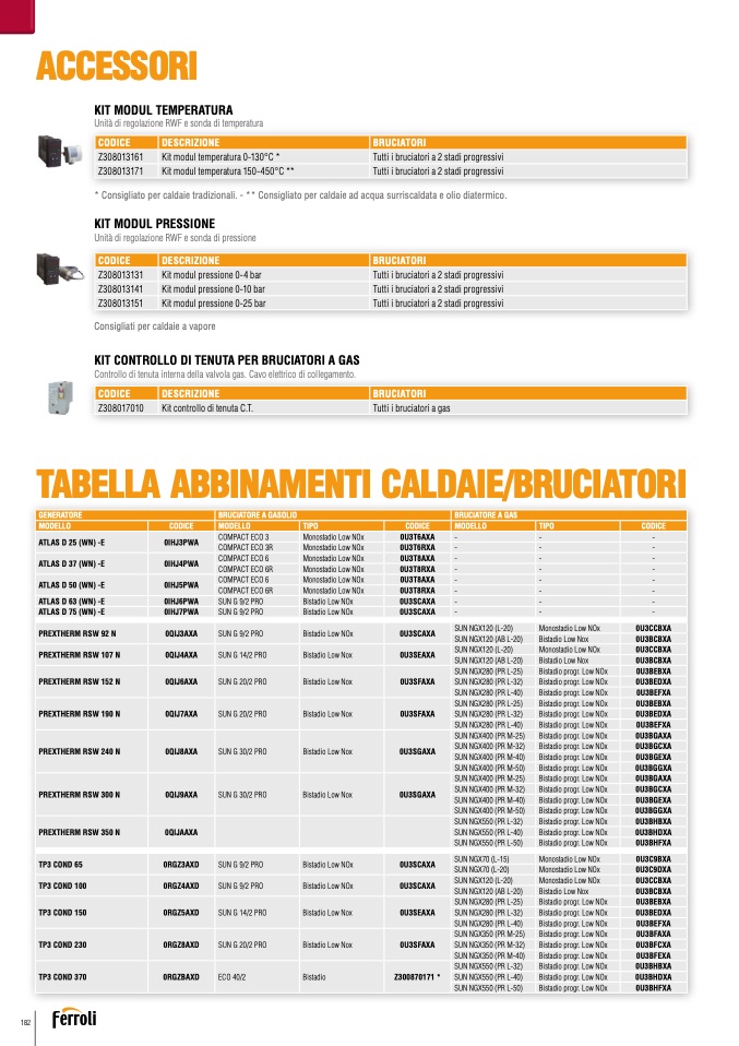 * Consigliato per caldaie tradizionali. - ** Consigliato per caldaie ad acqua surriscaldata e olio diatermico.