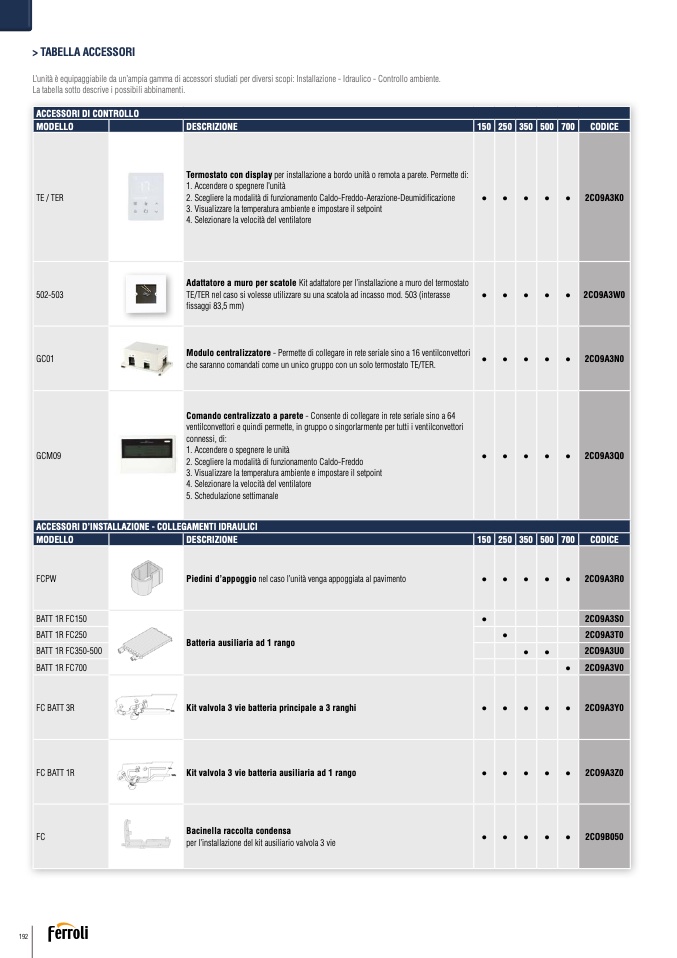L’unità è equipaggiabile da un’ampia gamma di accessori studiati per diversi scopi: Installazione - Idraulico - Controllo ambiente.