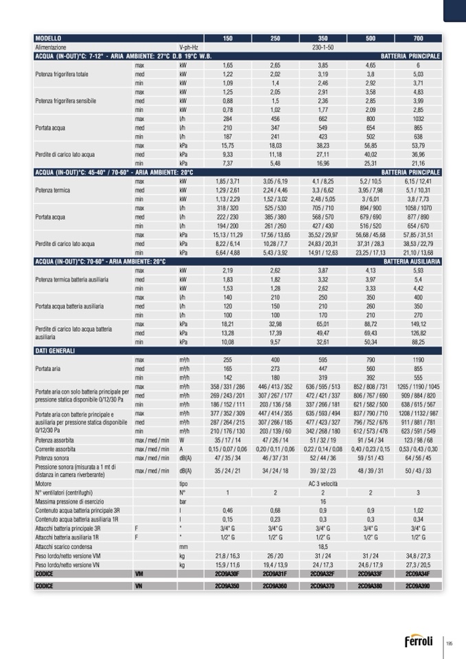 ACQUA (IN-OUT)°C: 7-12° - ARIA AMBIENTE: 27°C D.B 19°C W.B.