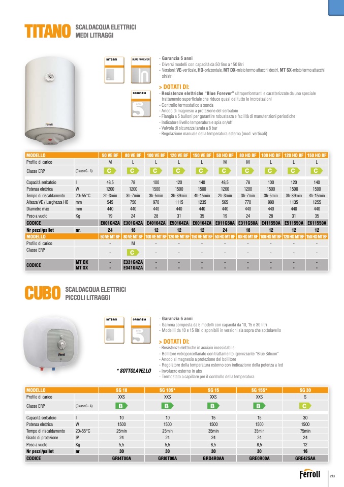 - Gamma composta da 5 modelli con capacità da 10, 15 e 30 litri