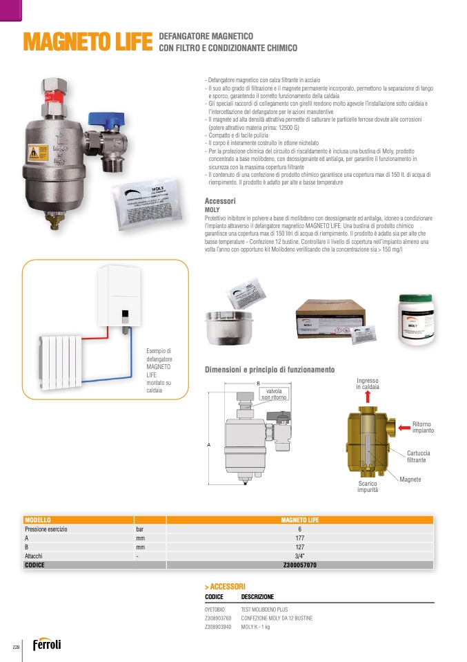- Per la protezione chimica del circuito di riscaldamento è inclusa una bustina di Moly, prodotto