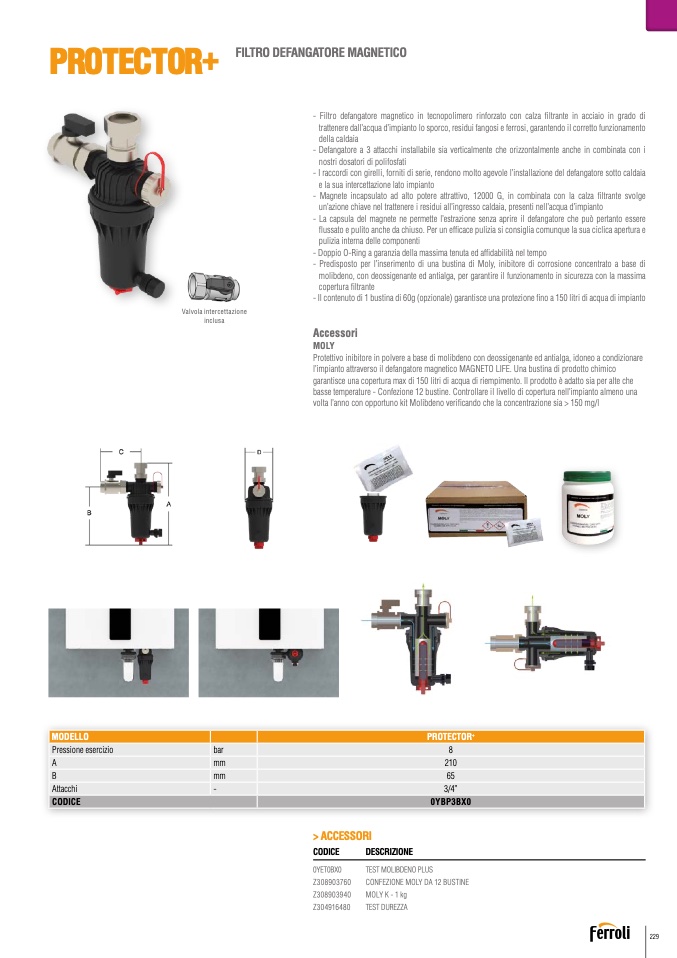 - Predisposto per l’inserimento di una bustina di Moly, inibitore di corrosione concentrato a base di