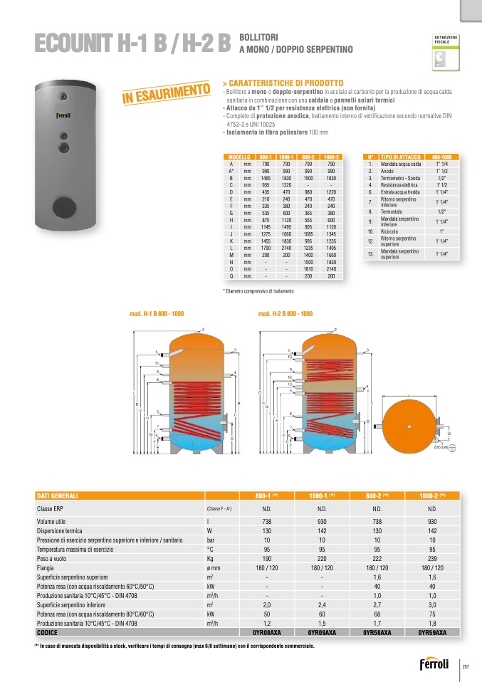 - Completo di protezione anodica, trattamento interno di vetrificazione secondo normative DIN