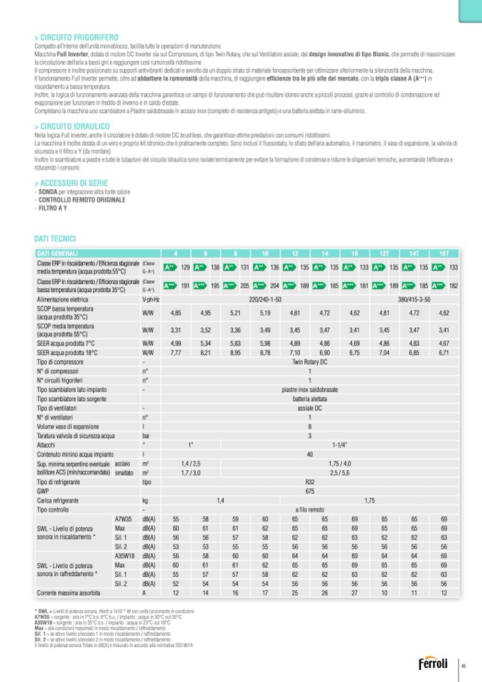 Macchina Full Inverter, dotata di motore DC Inverter sia sul Compressore, di tipo Twin Rotary, che sul Ventilatore assiale, dal design innovativo di tipo Bionic, che permette di massimizzare