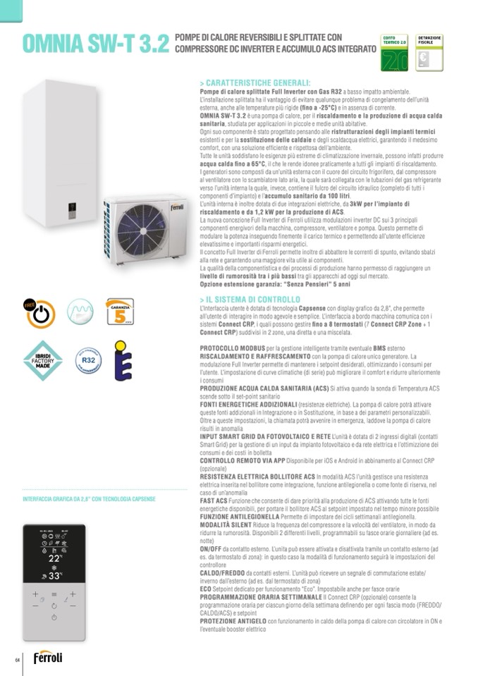 OMNIA SW-T 3.2 è una pompa di calore, per il riscaldamento e la produzione di acqua calda