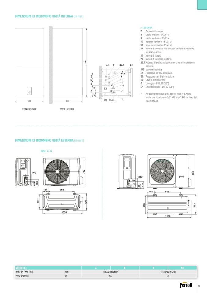 Per abbinamento con unità esterne mod. 4-6, viene