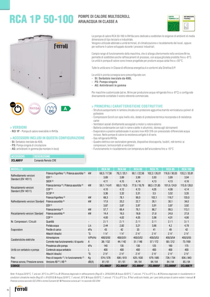 - RCI 1P - Pompa di calore reversibile in R410a