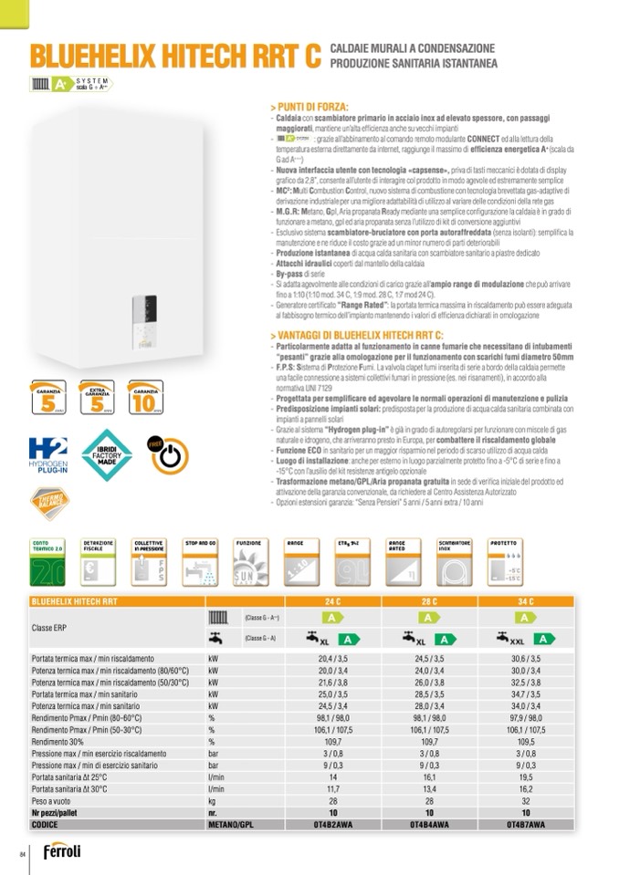 - Generatore certificato “Range Rated”: la portata termica massima in riscaldamento può essere adeguata