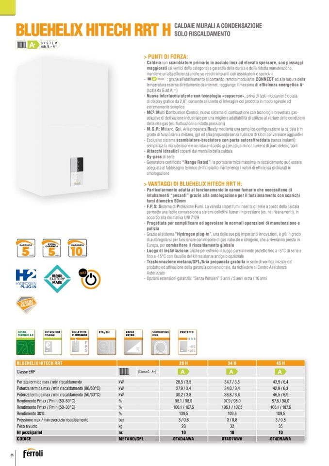 - Generatore certificato “Range Rated”: la portata termica massima in riscaldamento può essere