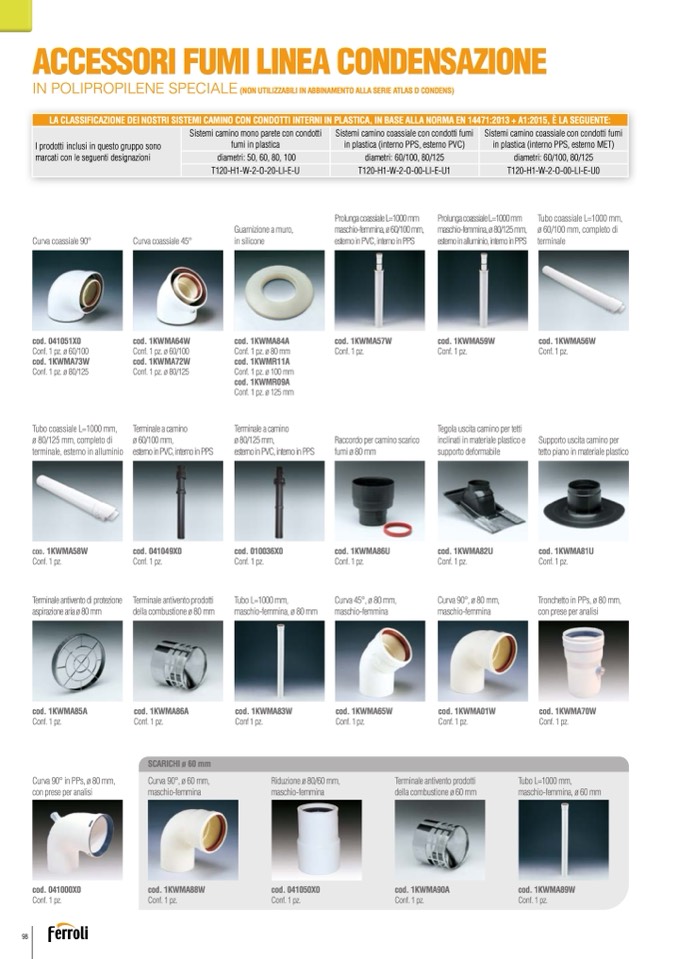LA CLASSIFICAZIONE DEI NOSTRI SISTEMI CAMINO CON CONDOTTI INTERNI IN PLASTICA, IN BASE ALLA NORMA EN 14471:2013 + A1:2015, È LA SEGUENTE: