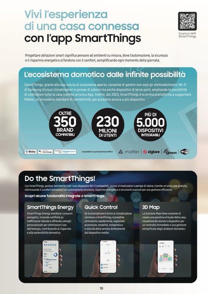 Con SmartThings, gestisci facilmente tutti i tuoi dispositivi Wi-Fi compatibili, inclusi climatizzatori e pompe di calore, tramite un’unica app gratuita,