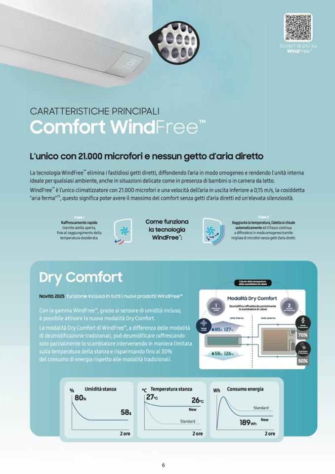 è l’unico climatizzatore con 21.000 microfori e una velocità dell’aria in uscita inferiore a 0,15 m/s, la cosiddetta