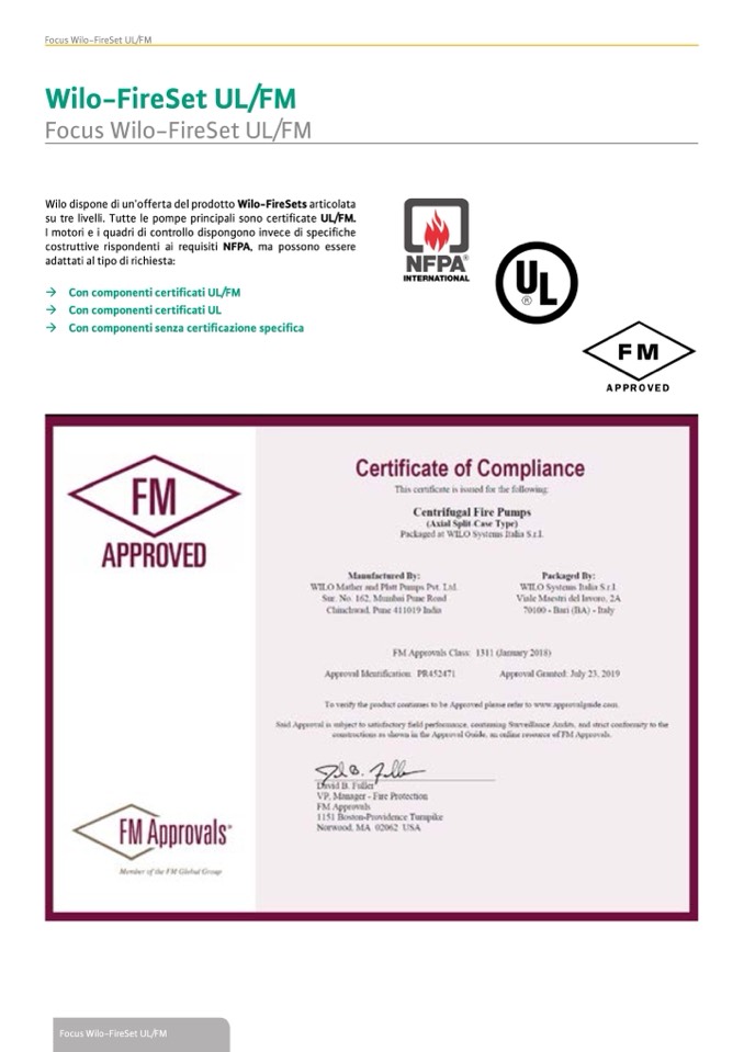 Wilo dispone di un’offerta del prodotto Wilo-FireSets articolata
