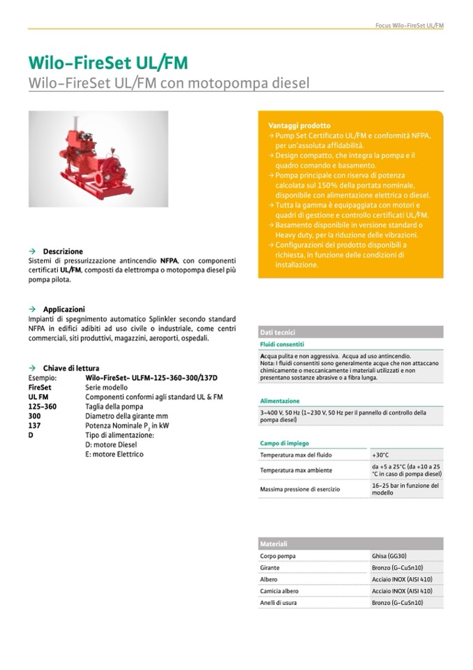 certificati UL/FM, composti da elettrompa o motopompa diesel più