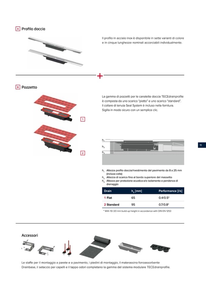 La gamma di pozzetti per le canalette doccia TECEdrainprofile