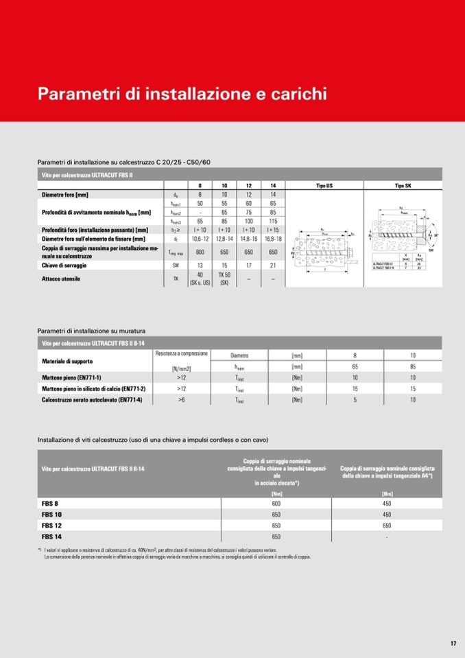 Parametri di installazione su calcestruzzo C 20/25 - C50/60