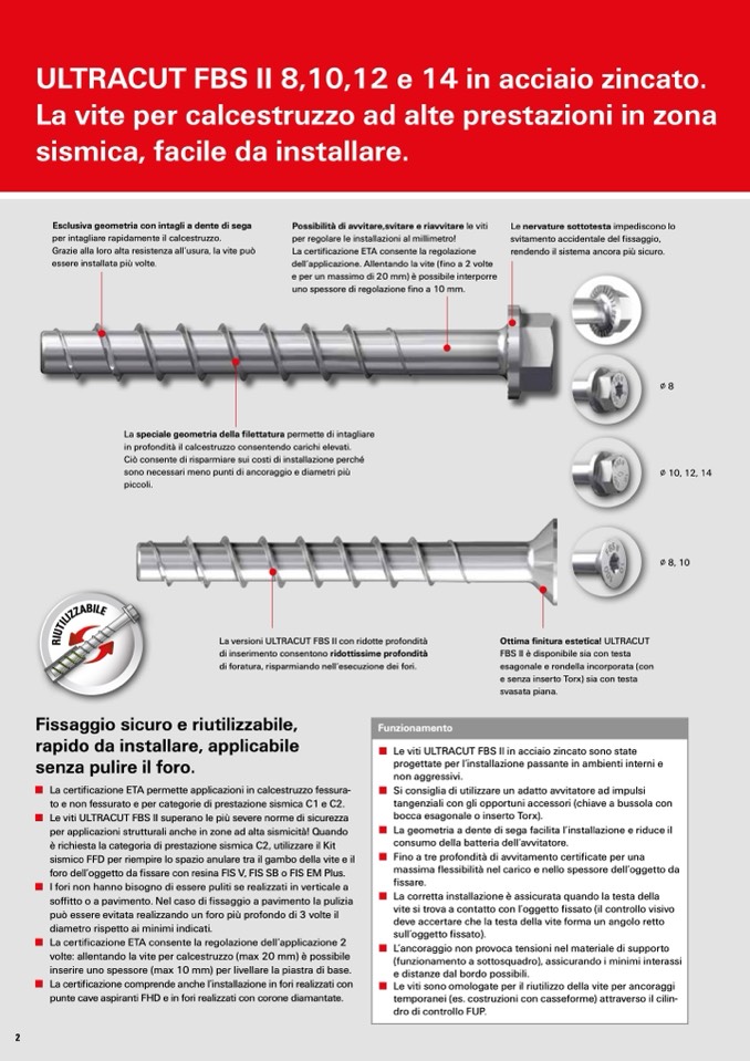 ■ Le viti sono omologate per il riutilizzo della vite per ancoraggi